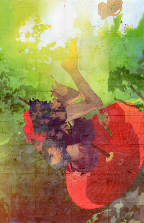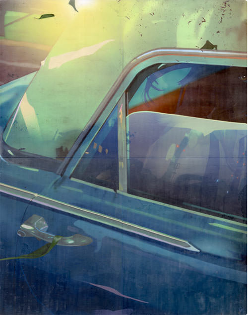 LeBasse Gallery in Culver City. True to form, he titles his work with emphasis to the narrative. Titles such as “Living Long Enough to be Familiar” or “Nowhere is it Safer than the Impracticality of Applied Impossibilities” illicit an inquisitive and sympathetic response. Edwin was kind enough to send us a few progress shots giving us a peek inside his method to creating these dreamy works of art.