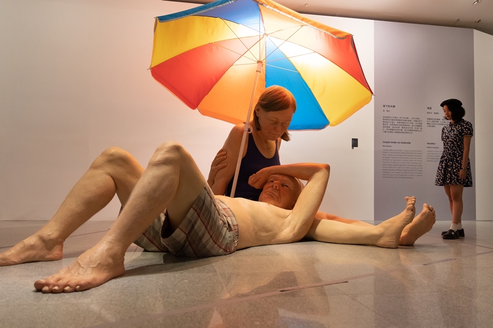 Whimsy, humor and fantasy collide in the sculpture of Beijing artist Wang Ruilin. Some pieces are realistic reproductions of animals’ bodies while others manipulate these bodies to create an unexpected effects. His “Horse Play” series feel especially humorous. The horses have expressive eyes and tuck in their necks almost petulantly. In one piece, horses pile on top of each other into a pyramid; at the top a horse stands with his head cocked to one side. Wang highlights each flesh fold on these horses, making their sculptural bodies seem lively.