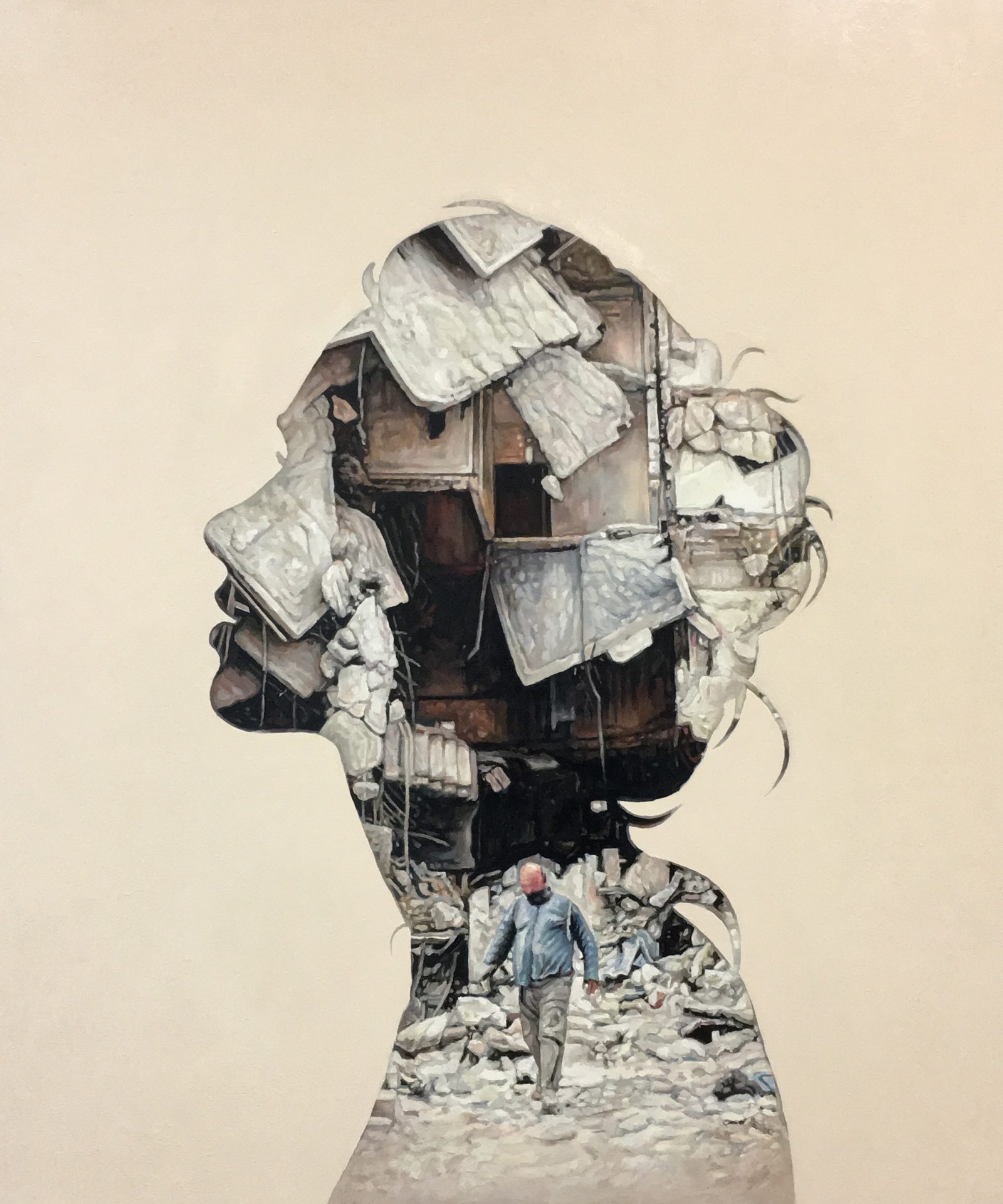 It seems that everything Tempe, Arizona-based artist Travis Rice touches turns to rainbow. In his paintings and installations, Rice entices viewers with colorful, abstract shapes that respond to geometry and architecture. His enormous, multicolored paper installations have been a hallmark of his shows over the past few years. With these waterfalls of shredded paper suspended from the ceiling, Rice alters the way that viewers interact with an otherwise ordinary gallery space. While these works are soft and amorphous, his paintings are more rigorous studies of form and depth. Shard-like rainbow shapes seem to explode outwards towards the viewer, creating layers of contrasting colors and textures.