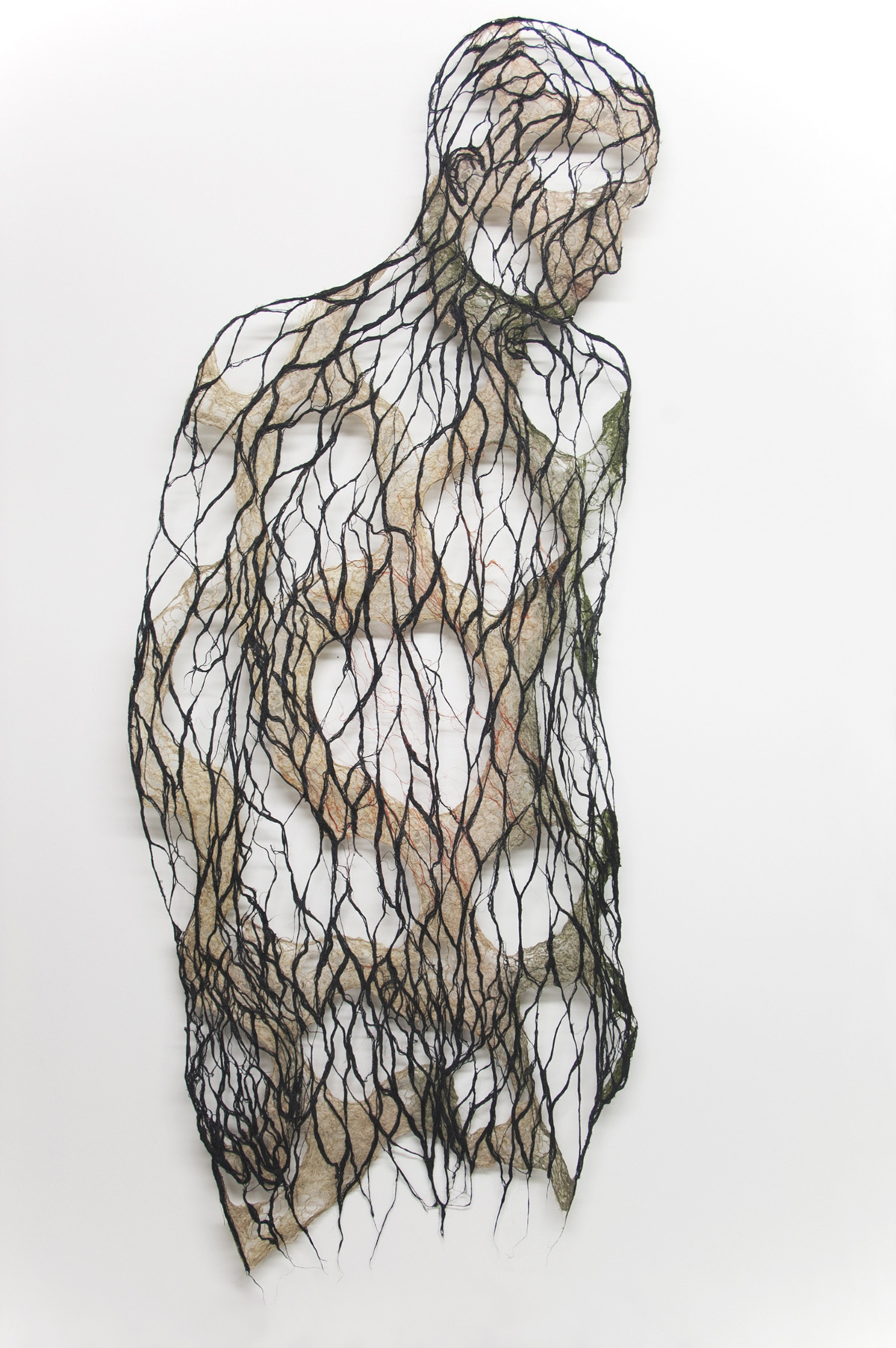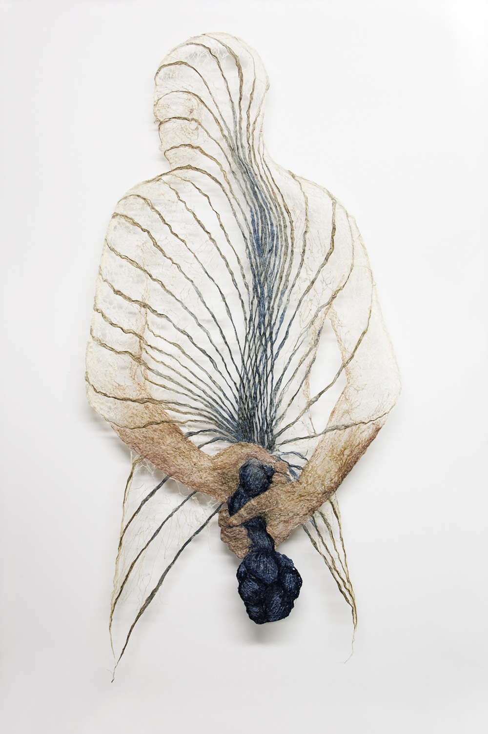 “With my artworks I am searching the interface of spirit and materials: Do we know precisely what is the physical and what is spiritual?” the artist says. “Visually my works are based on physical human body and body parts, but the details don’t follow anatomy or physiology of the real body but offers unexpected variants. In my works a human body represents more the soul and feelings instead of the physical substance. As materials for my works, I started to use paper yarns and proceeded to hand made paper made of flax among others. I proceed to use flax without the traditional papermaking techniques and researched the various other ways to treat it.”