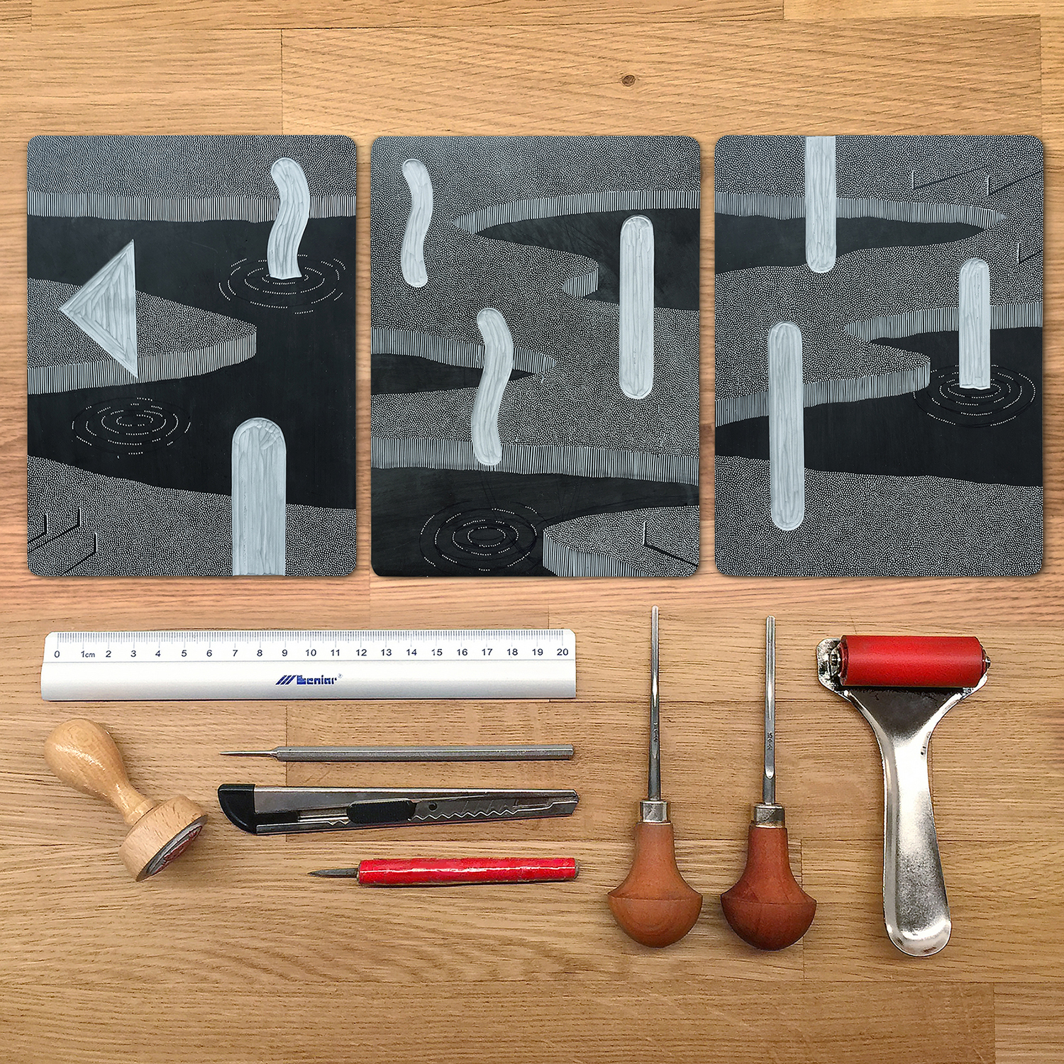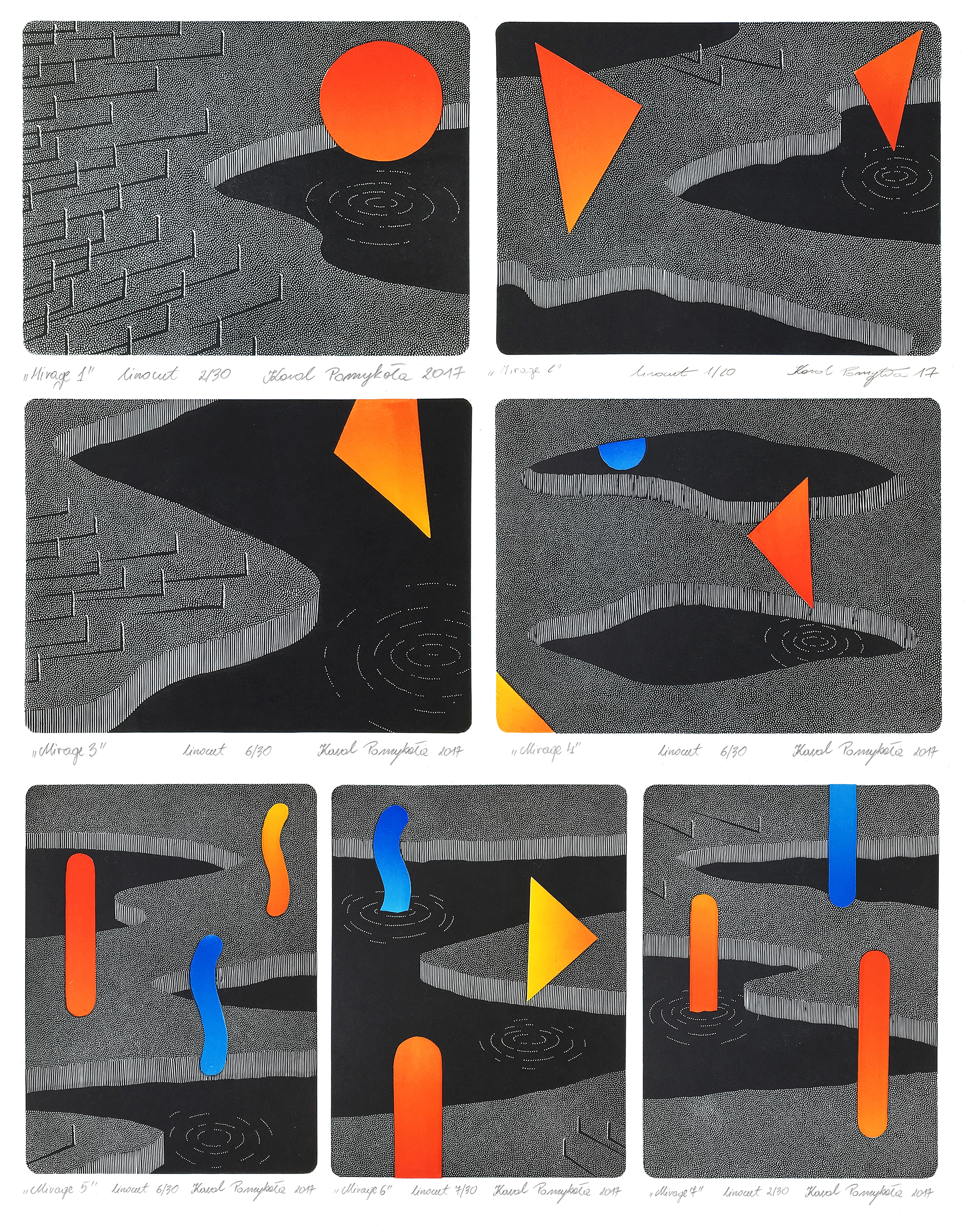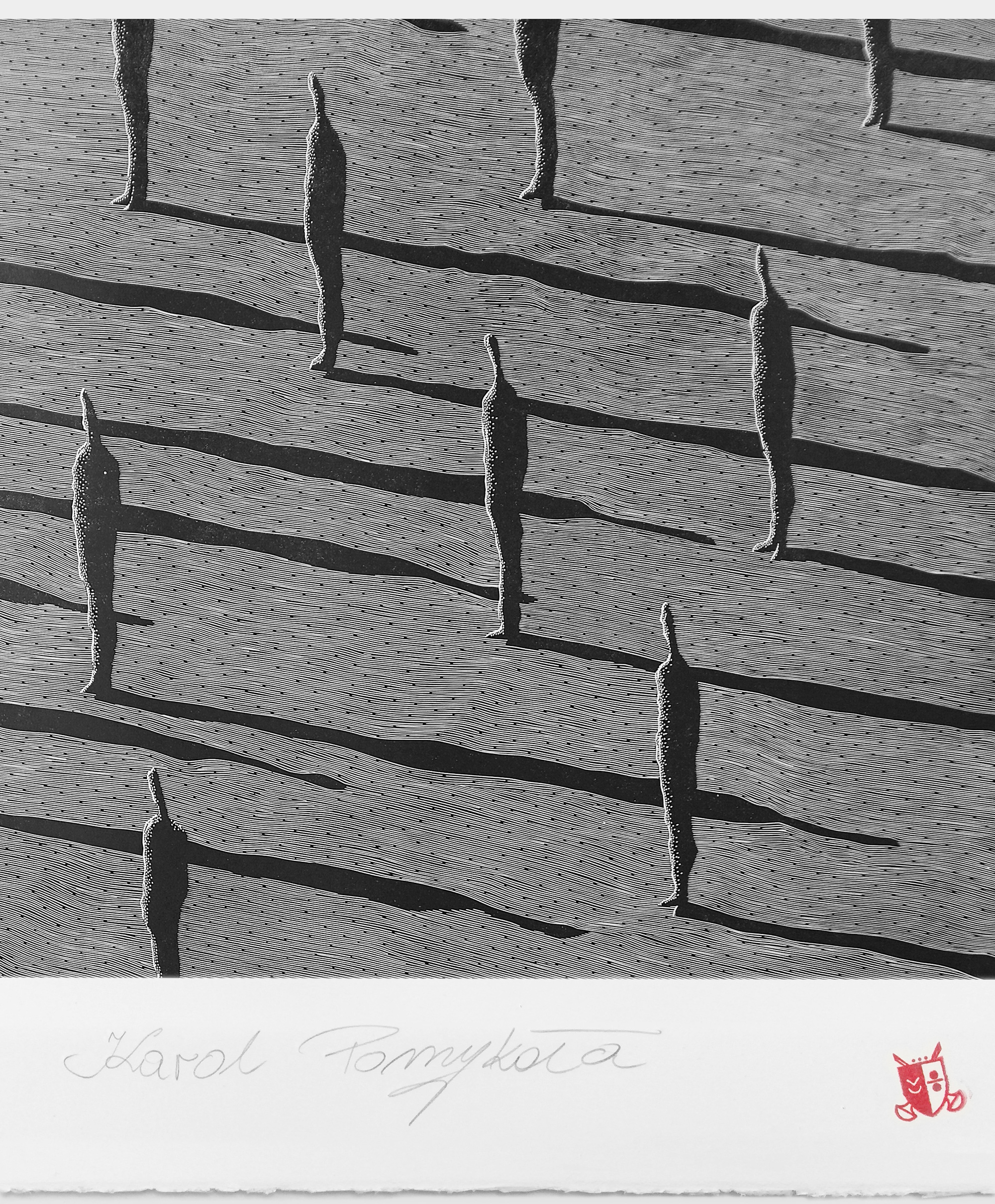 Karol Pomykała is known for his stirring, monochromatic linocuts, creating massive and provocative meditations. Recent, the artist has combined this approach with virtual reality, allowing gallery- and museum-goers the opportunity to enter his figure-filled scapes.