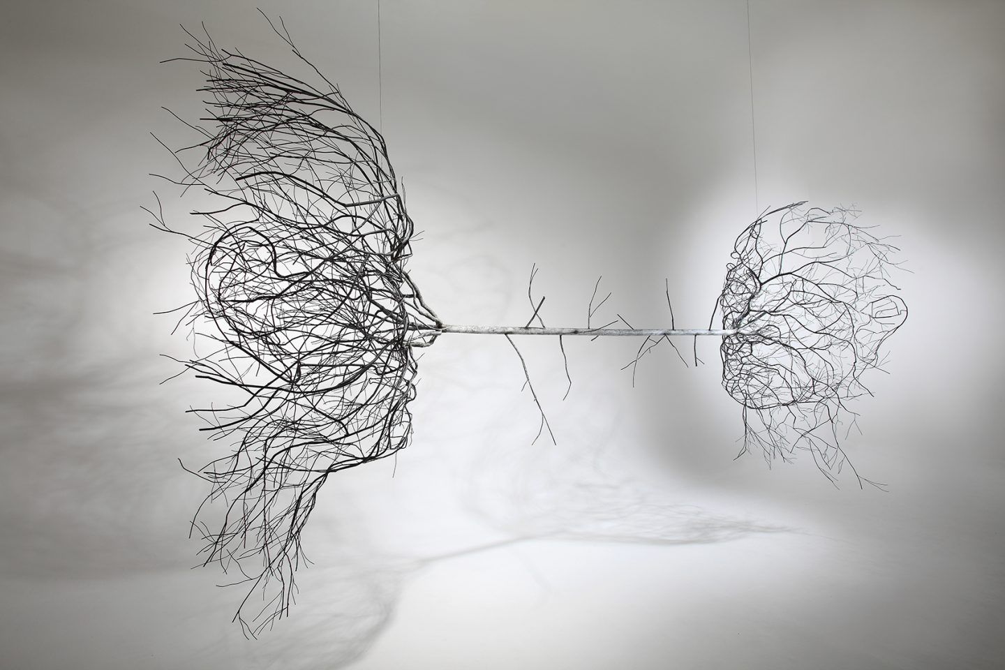 Sun-Hyuk Kim’s sculptures may resemble manipulated tree limbs, yet the artist’s work is in welding and cutting metal wires and pipes. The result are ethereal figures that impress on any scale. The South Korean’s startling creations have appeared in gallery and museum shows across the globe.