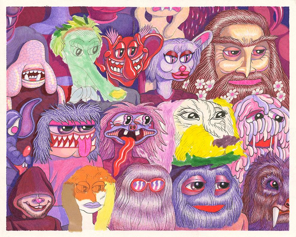 Matt Furie, the artist and illustrator known for crafting (and killing) the frog character Pepe, brings his humorous and vibrant sensibilities to Nucleus Portland in a show currently running at the gallery. “Tuff Crowd” offers both crowd scenes and single portraits, all packed with Furie characters.