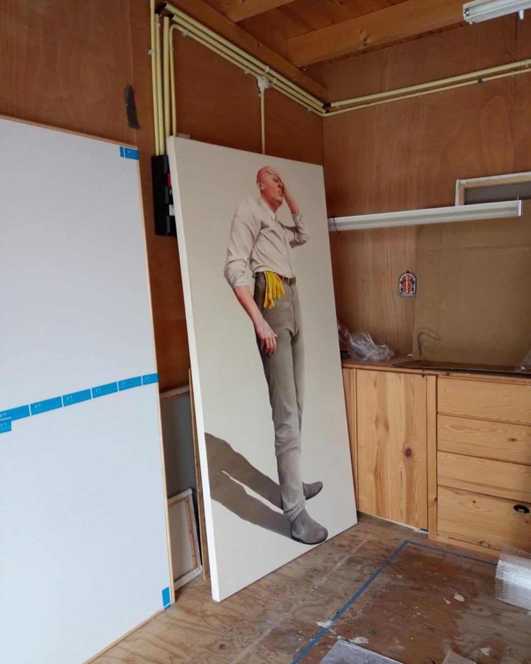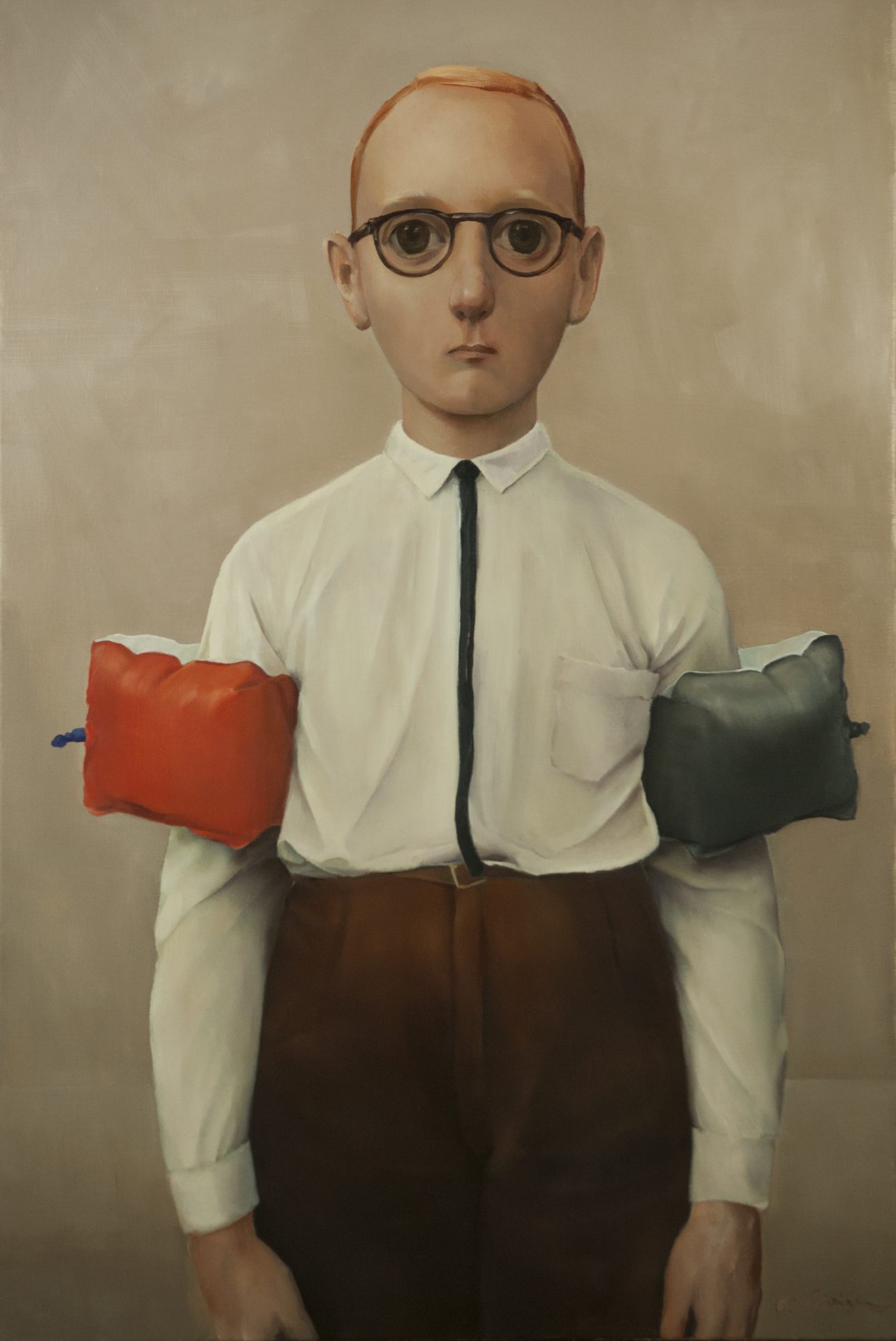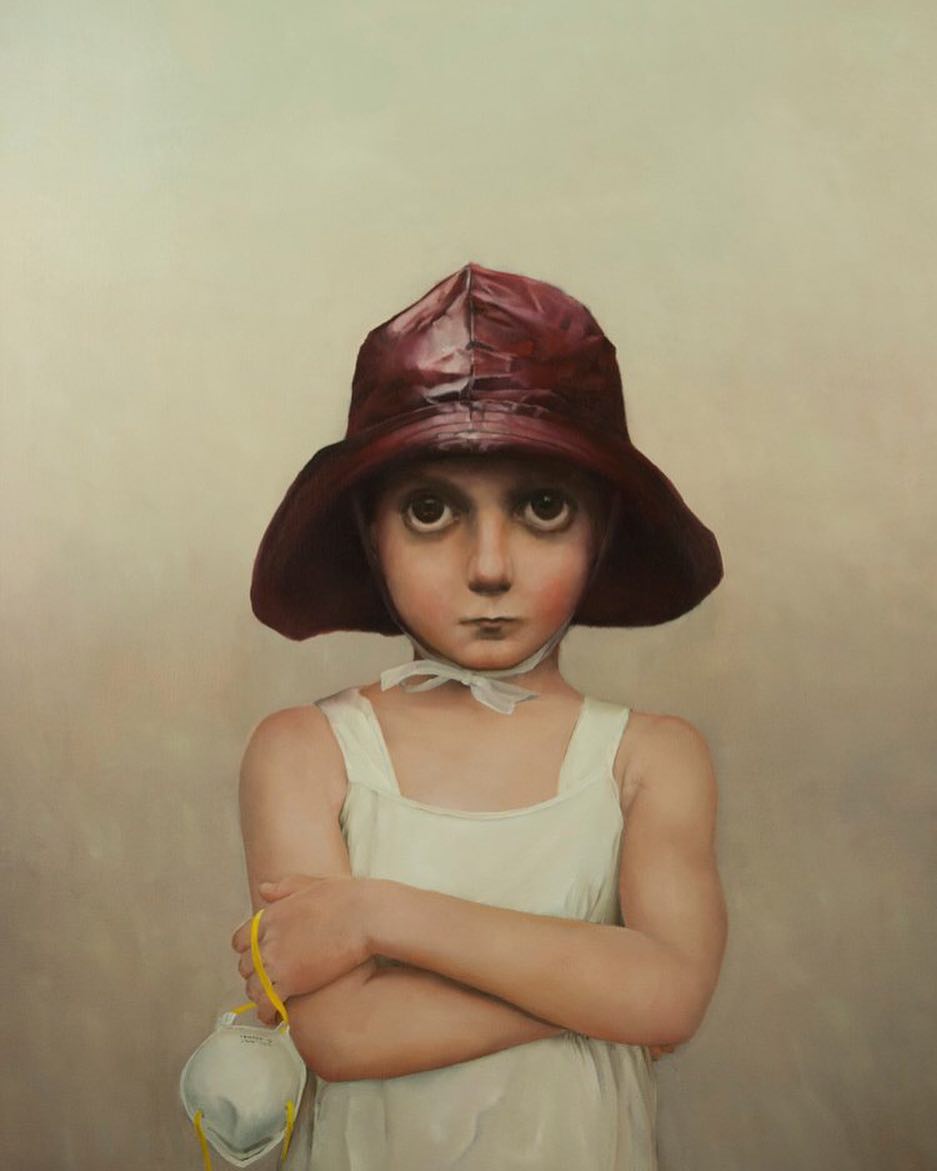 Ellen de Meijer’s new paintings show how contemporary norms and social mobility has come at the cost of our planet’s health. “#CO2,” a show opening at UNIX Gallery on April 11, shows characters at times taking small measures to protect themselves from the elements, while the greater threat to all looms. The gallery says that in this show, viewers can find “a collection of stoic, uncomfortable characters unabashedly displaying their wealth.”