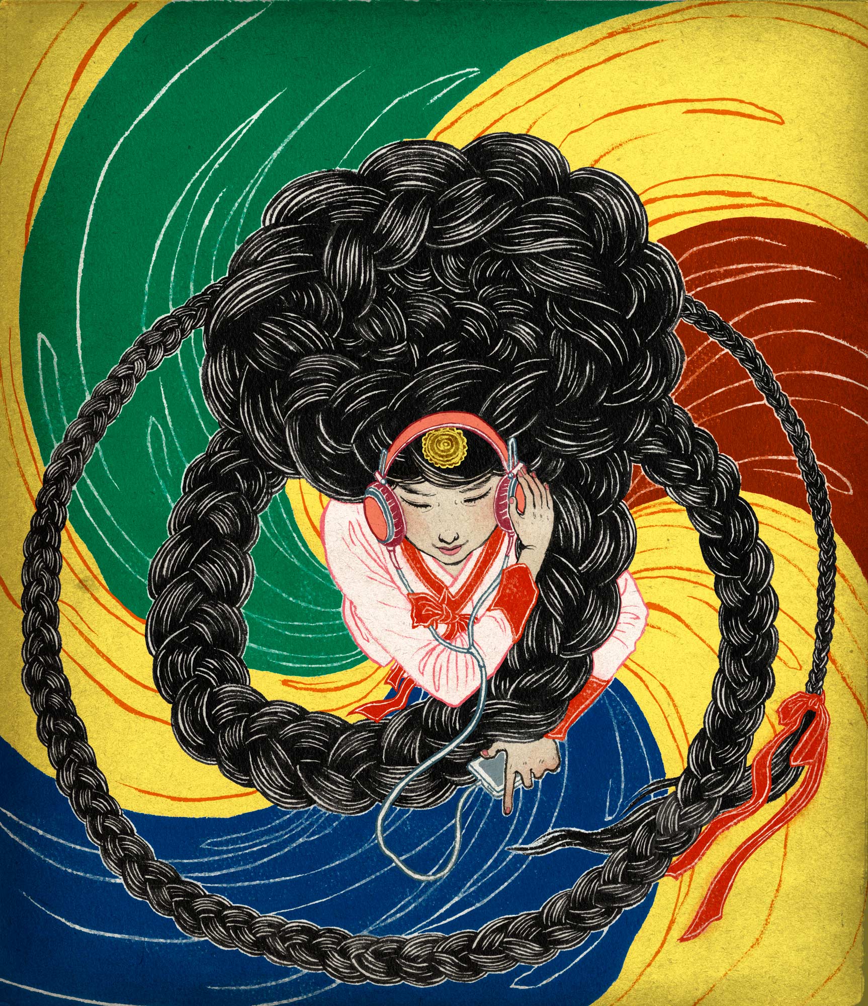 Toronto-based artist Winnie Truong (featured on the cover of Hi-Fructose Vol. 22) began drawing unruly, prolific hair as a way to interrogate Western beauty standards. As her body of work evolved, her depictions of hair became more sculptural and intricate. Hair became the medium to test the bounds of form and line. Her latest colored pencil drawings place more emphasis on the abstract arrangements of waves and curls than on the hairstyle's wearer. Truong's current solo show, "Invisible/Visible" is on view at Erin Tump Projects in Toronto through December 20.