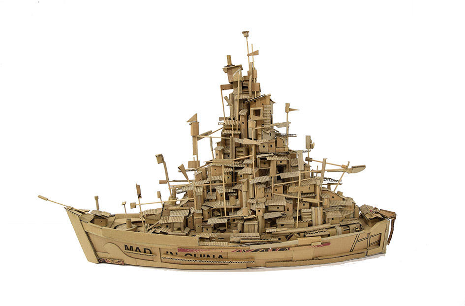 Alfredo and Isabel Aquilizan tackle displacement, community development, and memory in their cities and structures made of cardboard. Their work ranges from these sculptures and installations to drawing, paintings, and works on paper. Their current, major installation at Auckland Art Gallery Toi o Tāmaki, “Pillars: Project Another Country,” “explores fundamental ideas about what creates community, what constitutes family, and how homes are fabricated around human needs and relationships.”