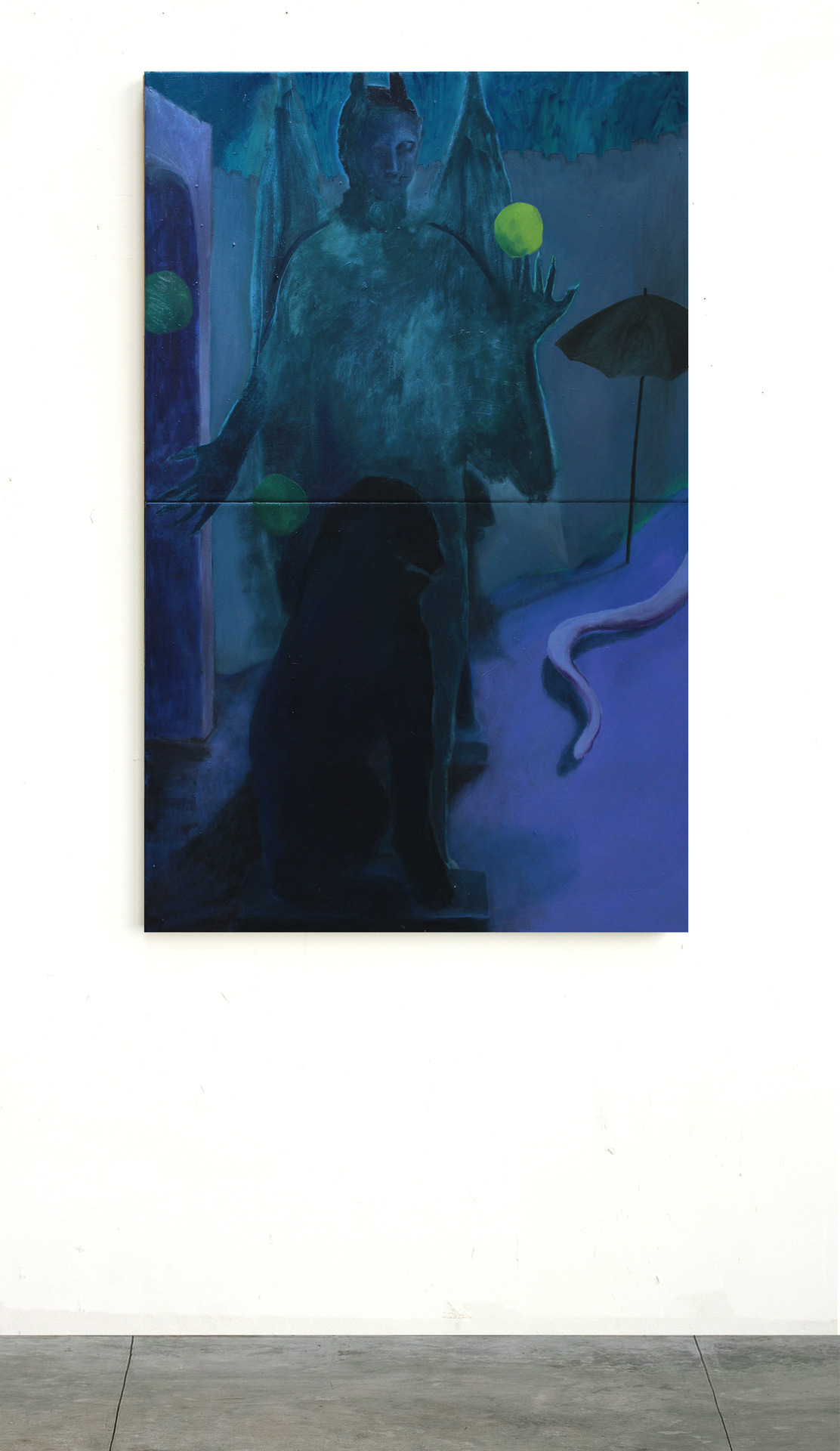 “The investigation of painting’s evocative power is the central core of my research,” the artist says, as translated. “I feed myself with images, representations and whatever artifacts are able to survive to the owing of time leaving a sediment in reality as a relique of a past never passed. My interest has an archeologist nature, that leads me to discover and collect these traces, coming from different ancient civilizations, based on an easy and single criterion or condition: Being trace and/or direct consequence of the timeless attempt of human beings to communicate with a higher reality, an oniric world of myths and faiths, beliefs and religions, as natural and necessary manifestation of his own nature.”