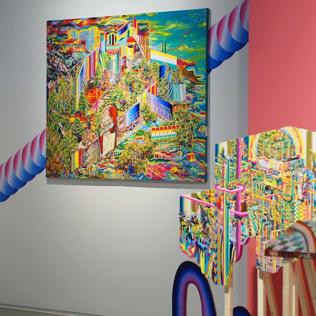 Eunjeong Choi’s wild, illusionary oil paintings create cityscapes with kaleidoscopic forms. In a manner that can be likened to Maya Hayuk and Jen Stark, Choi creates both neat and muddied reflections on color, cascading in two and three dimensions. The painter-installation artist is currently based in Seoul, South Korea.
