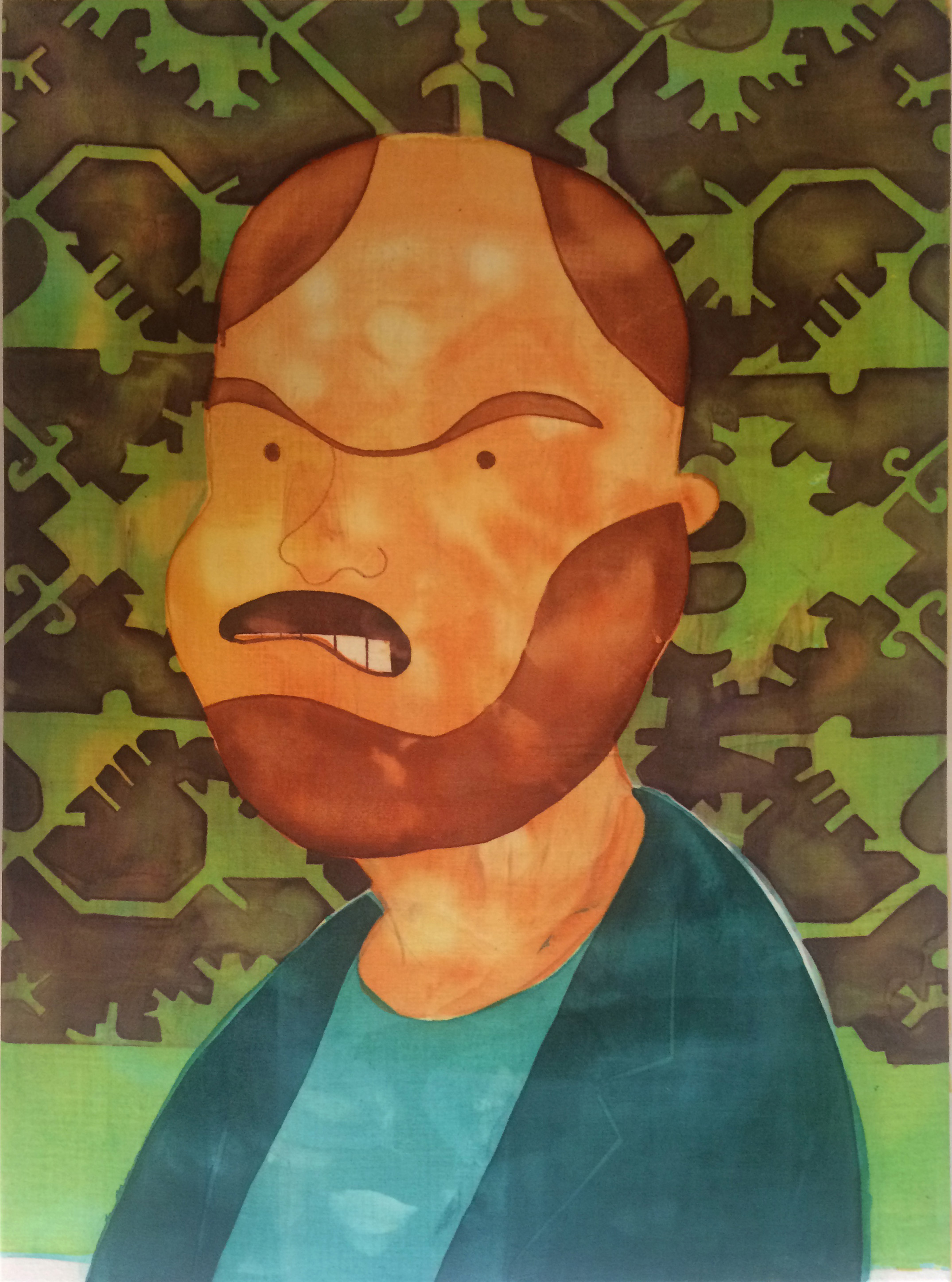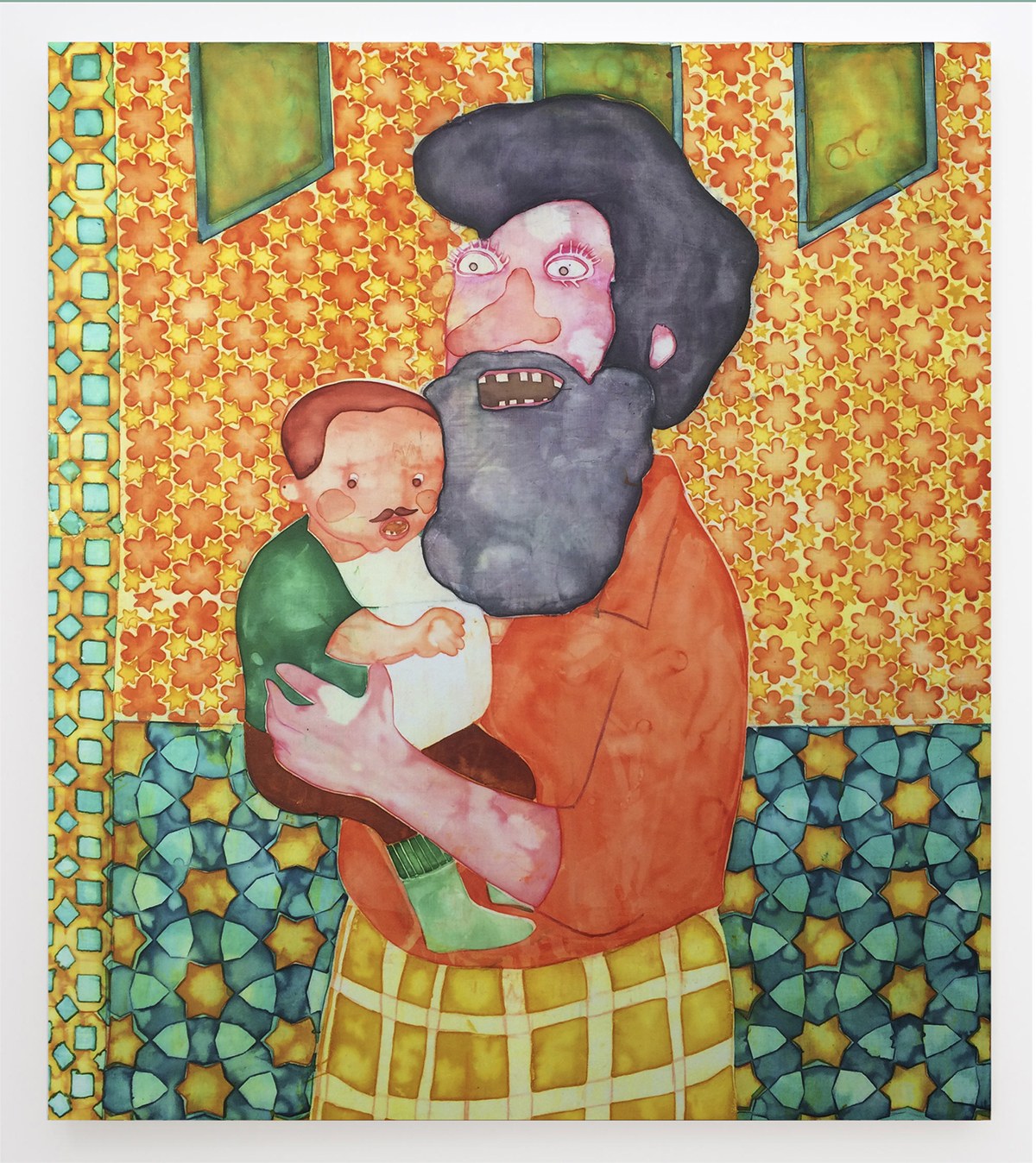 Working with fabric dye on cotton, Iranian artist Orkideh Torabi creates scenes and portraits that poke fun at the men behind patriarchal societies. The works are tethered to the history of her home country, taking influence from antique Persian miniatures. The artist is currently based in Chicago.