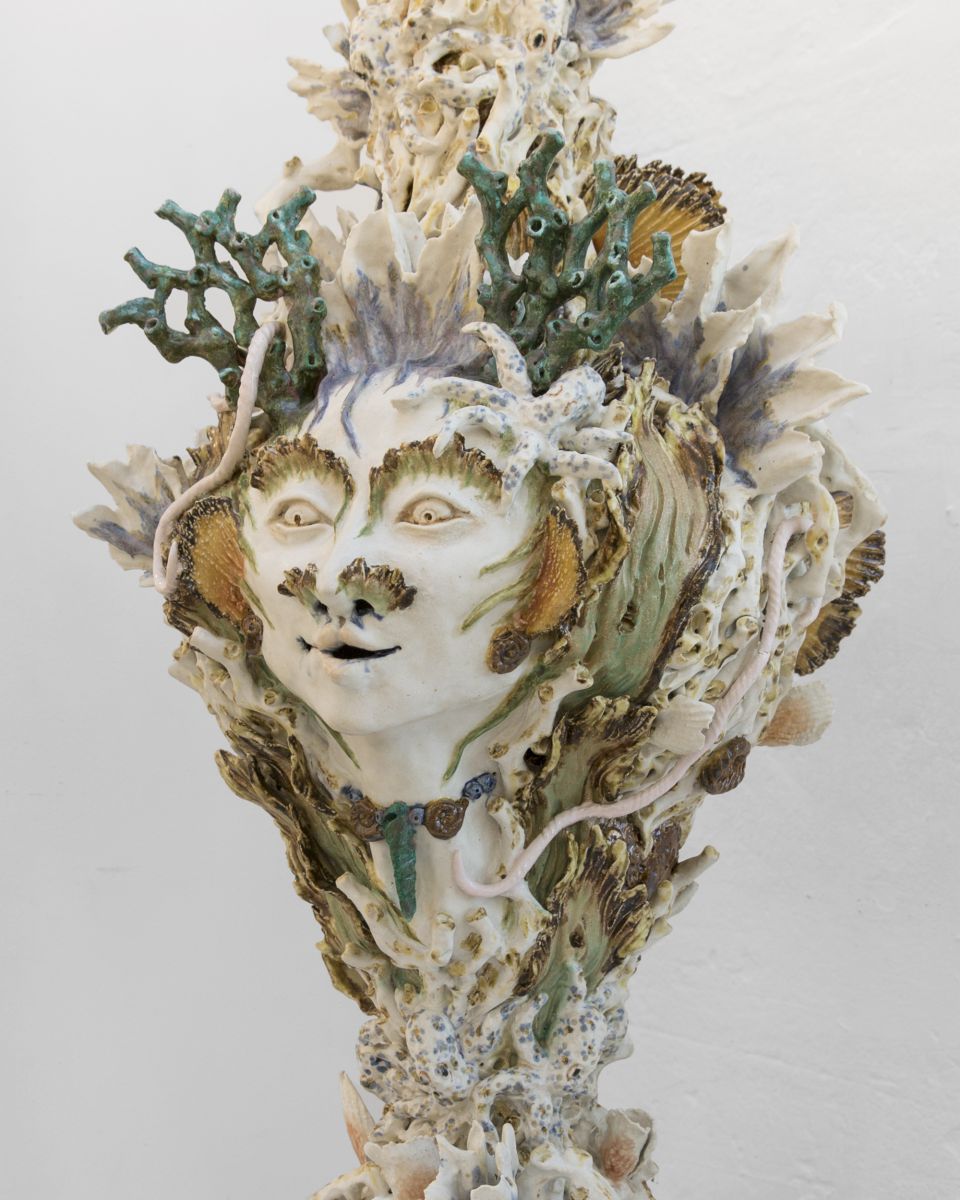 In her ceramic sculptures, Janet Beckhouse taps into ancient contemplations on life, death, and nature. Though at times disconcerting, with writhing floral elements enveloping her figures, each work is executed with elegance. Beckhouse crafts these sculptures in both towering and handheld scales.