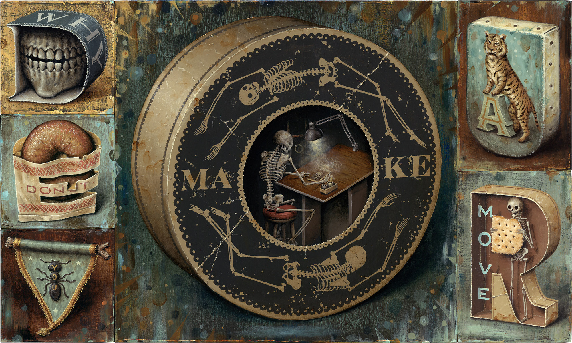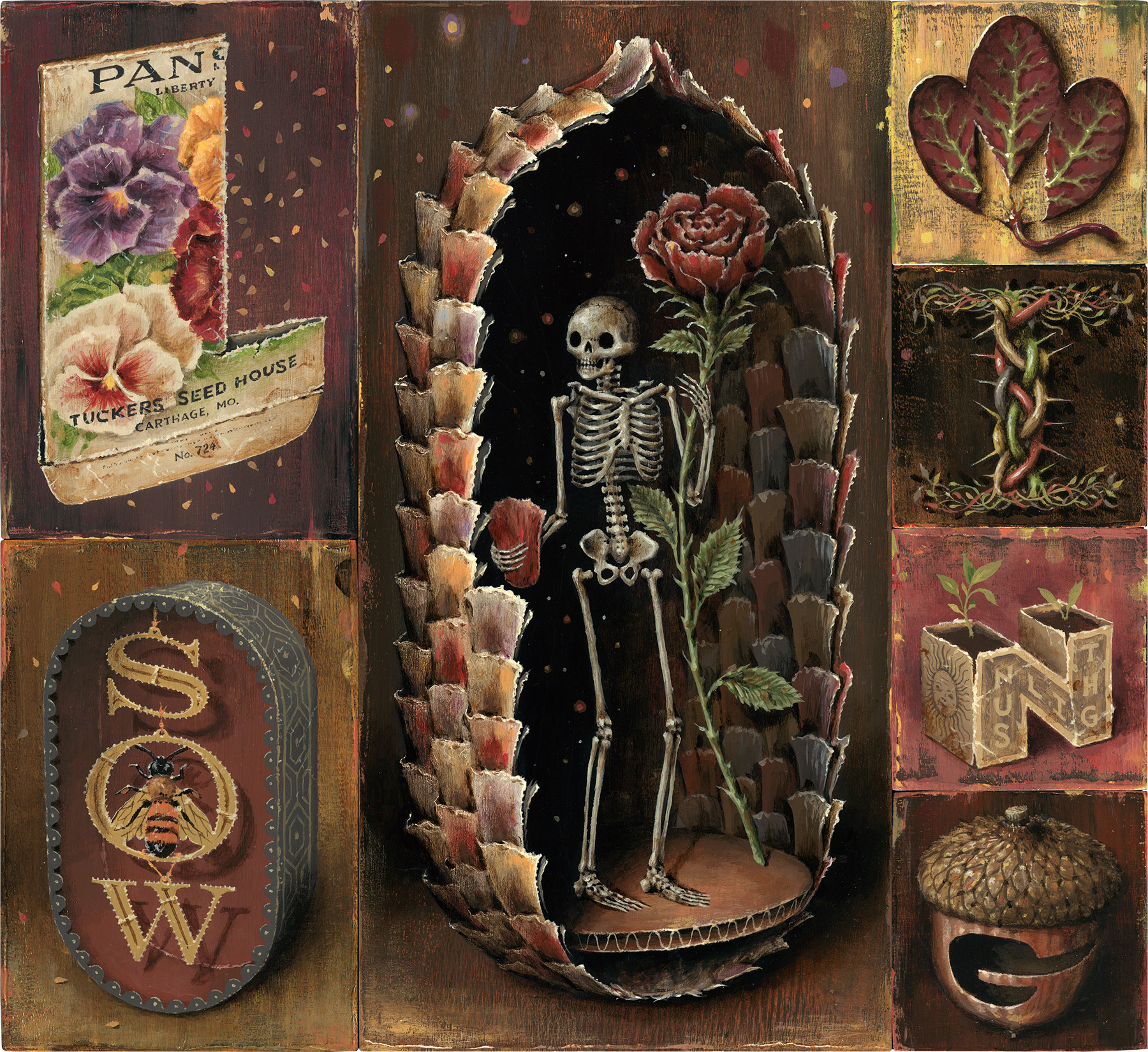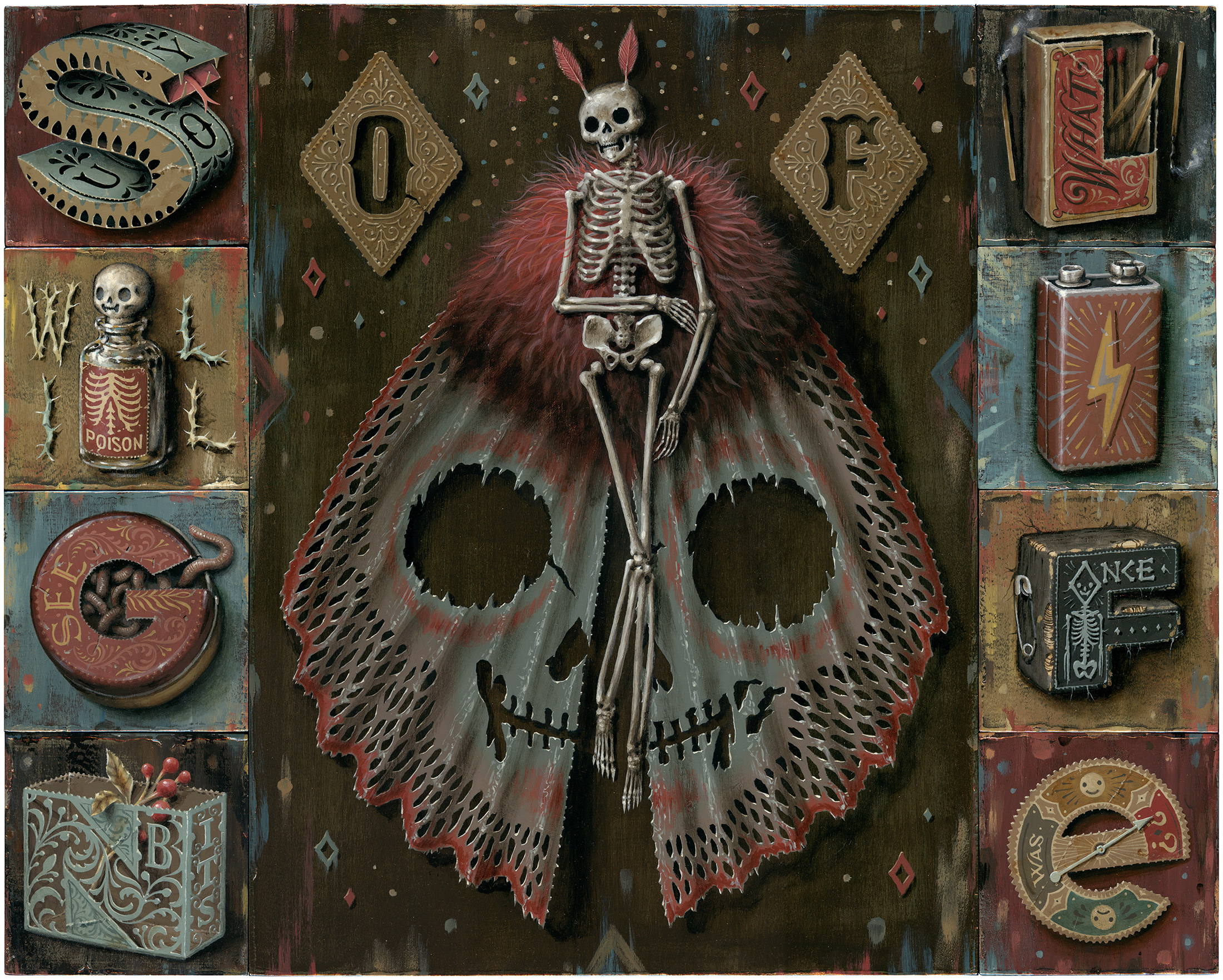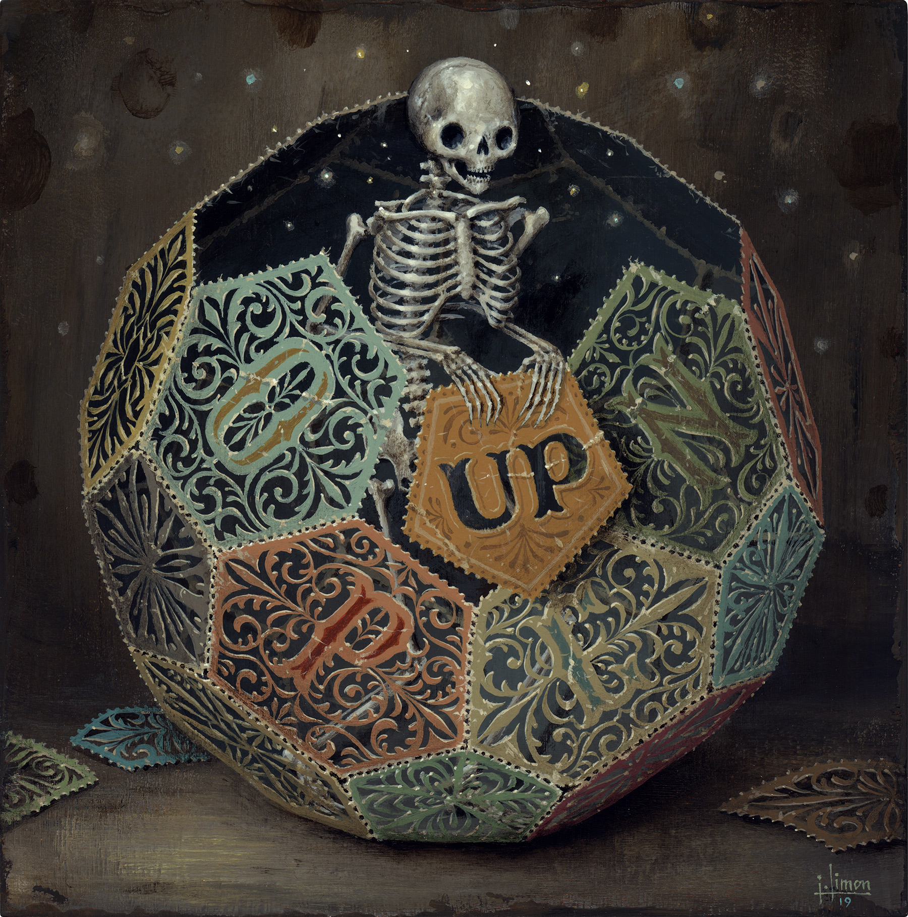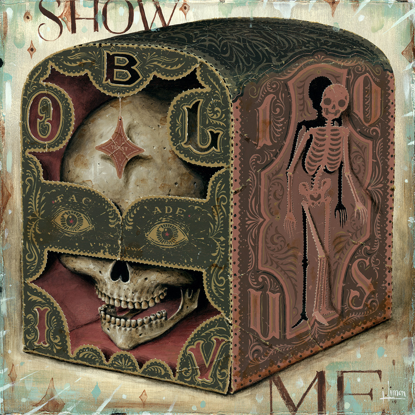Jason Limon, whose striking paintings play with the macabre and typography, offers new acrylic works on panel next month in a show at Copro Gallery in Santa Monica. Kicking off on Aug. 10 and running through Aug. 31, “Signs of Life” is at once playful and riveting, in the artist’s knack for conveying perspective and depth.