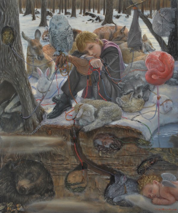 Tokuhiro Kawai is known for paintings that both recall and satirize scenes from mythology. Yet, as his statement with Gallery Gyokuei reminds us, “The history of pictorial expression is history of reproduction.” In recent years, Kawai has specifically garnered popularity for the motif of felines donned in the garb of royalty.