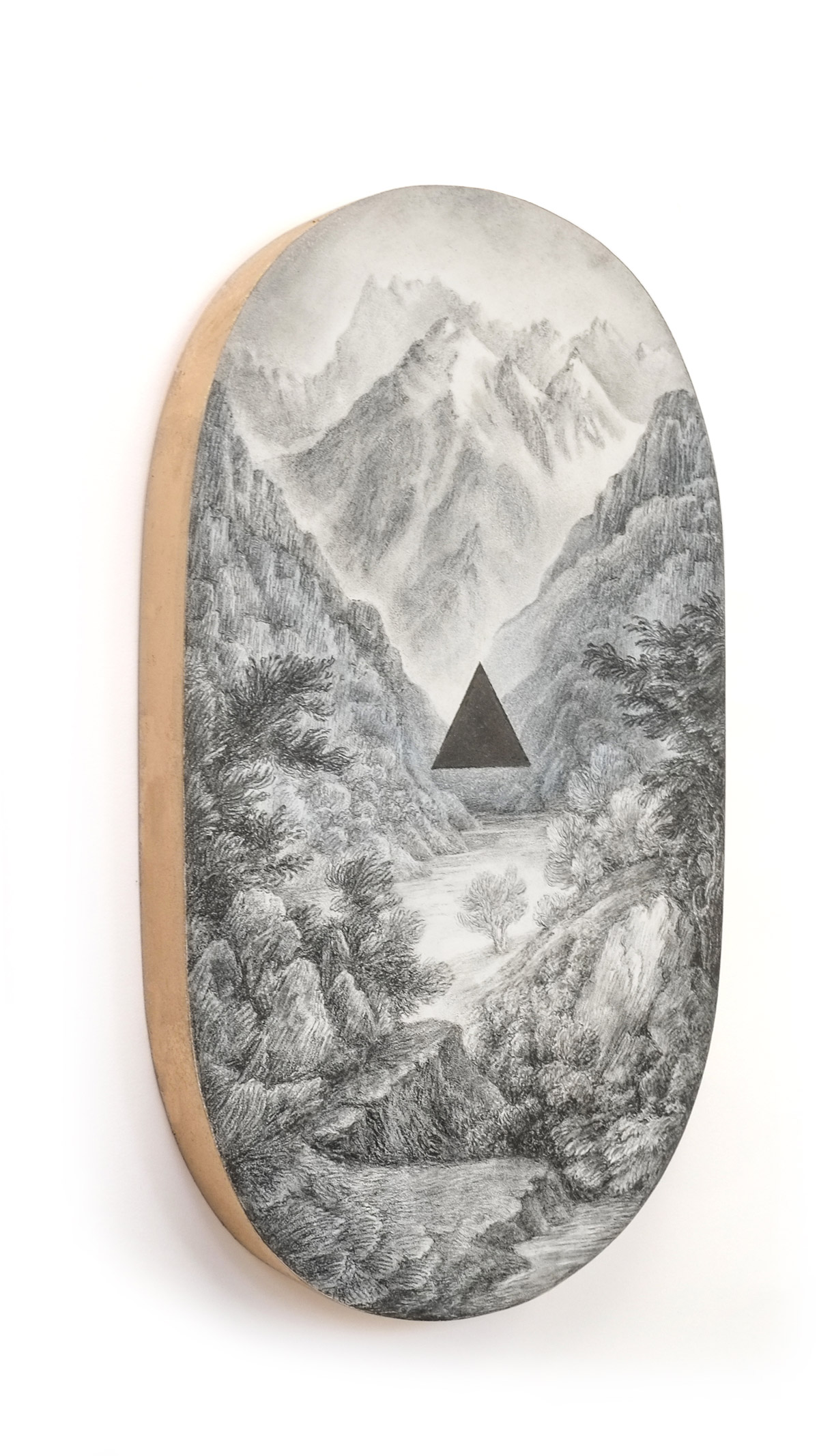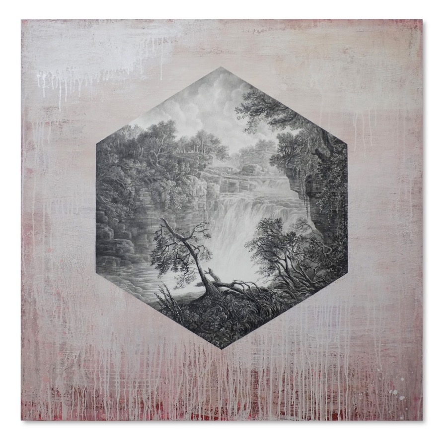 Sue Williams A’Court’s graphite portals into lush environments grace unexpected surfaces, with the artist’s aim to conjure a state of mindfulness rather than any specific terrain. Her work often blends painting, collage, and of course, graphite drawing. Blending both a loose style and hyperdetailed sensibility, the tension in her work brings the viewer to another place, entirely.