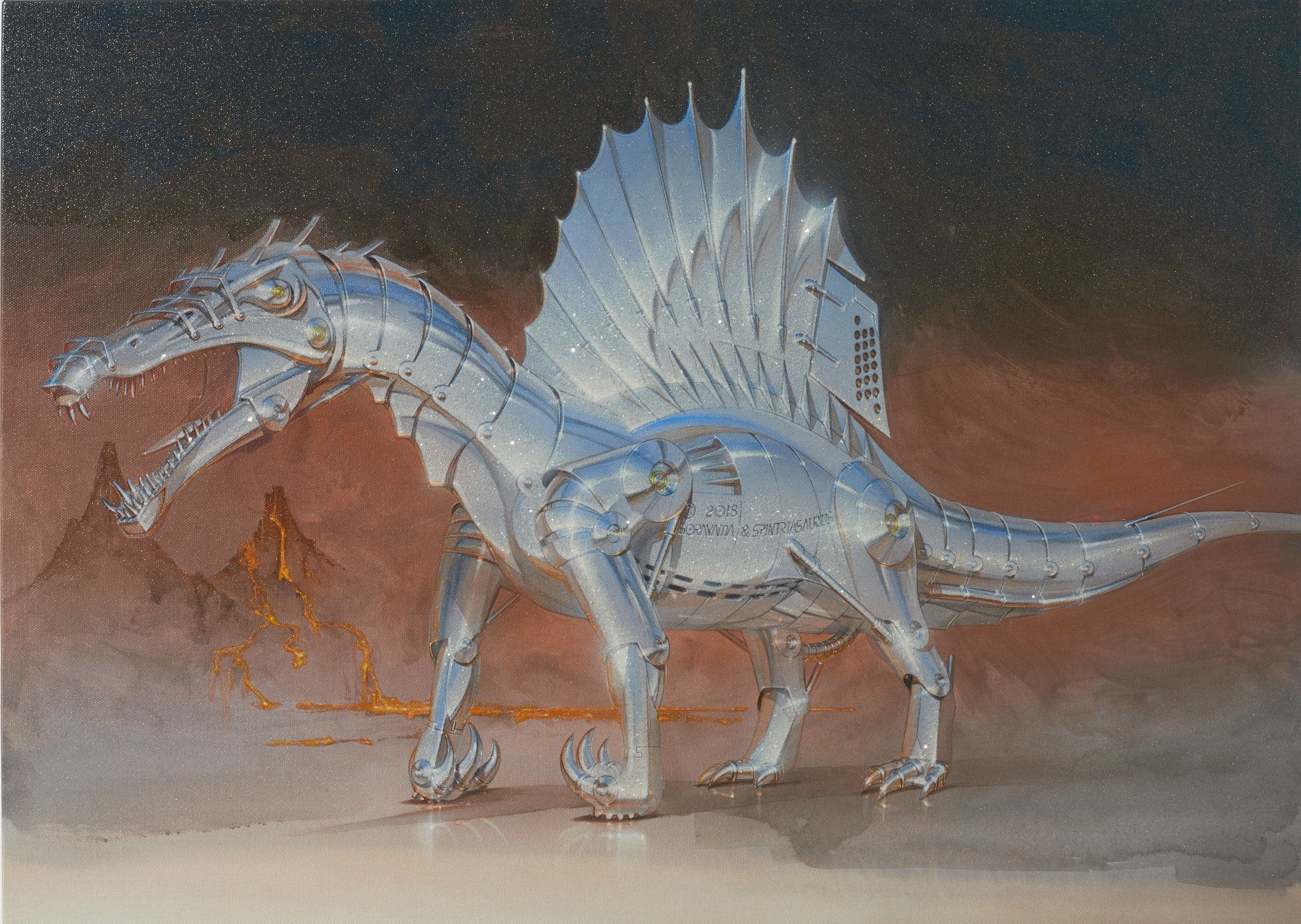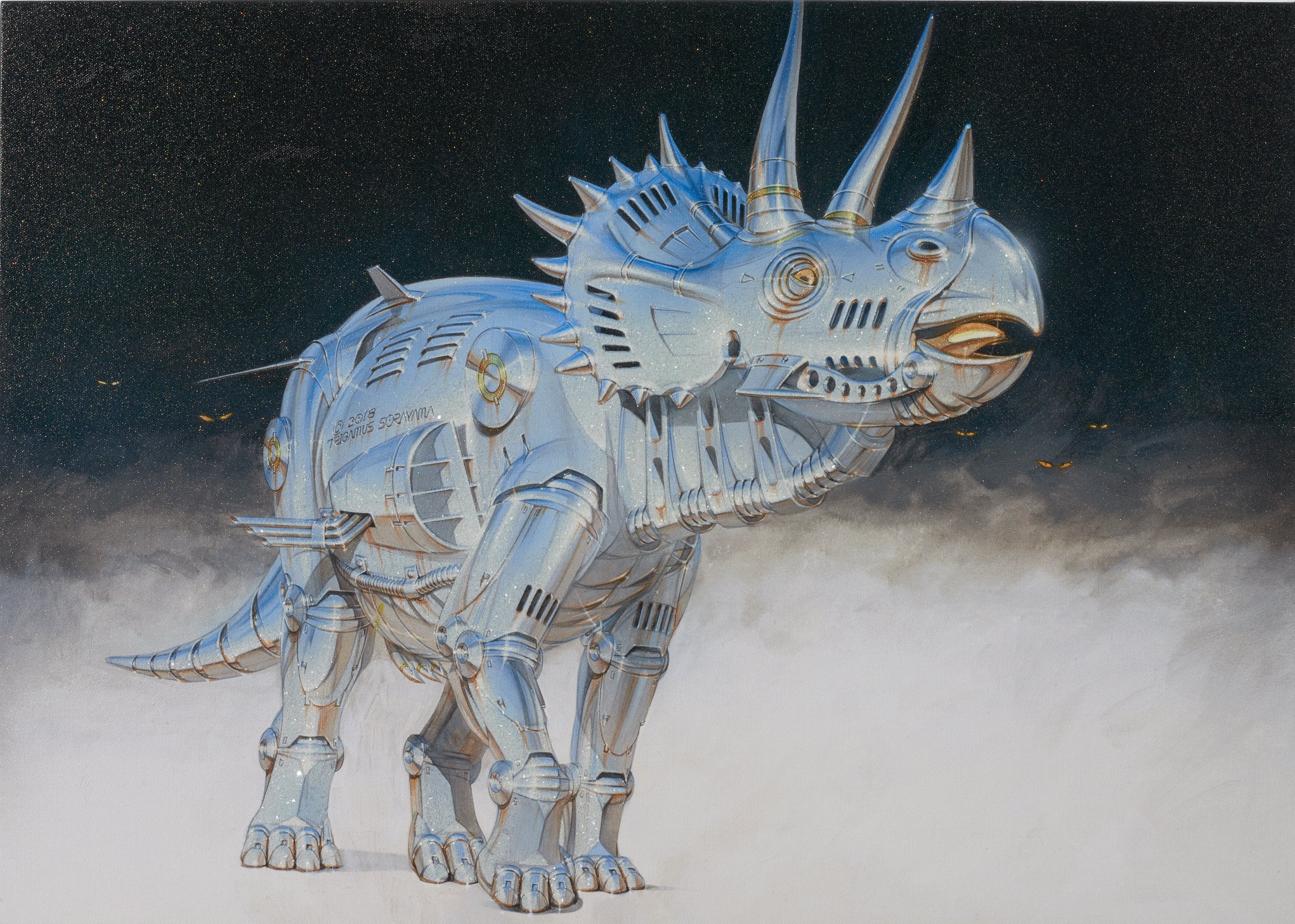 Nanzuka offers some context for the artist: “Sorayama continues to receive respect from creators and artists across the world as the godfather of realistic expression thorough his use of the airbrush technique. His 1983 publication ‘SEXY ROBOT’ had generously described the process of painting robots through a series of graphic explanations, and has since been distributed and referenced as a textbook in various art schools throughout the globe. As a result, the influences of Sorayama’s works extend far beyond the boundaries of Japan’s commercial art scene, presenting an impact on a diverse array of media from Hollywood films, the world’s street art and to the realm of fine art.”