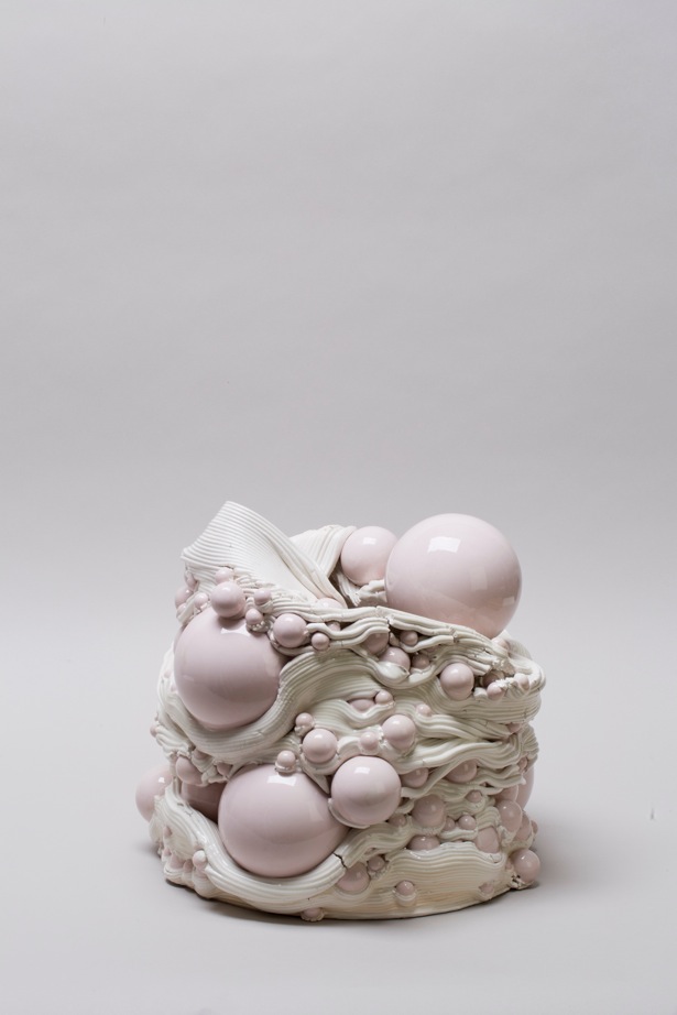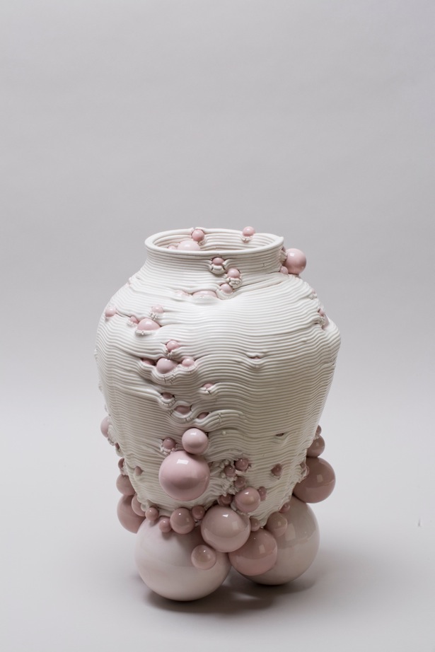 Andrea Salvatori subverts art-historical themes and motifs in his sculptures, reimagining the interior of Renaissance-style figures or unsettling forms emerging from pottery. He moves between traditional and digital means to execute these works.