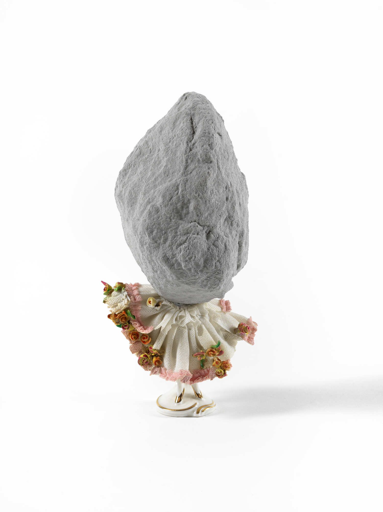 MADEINBRITALY Art Gallery says the artist makes “ironic and witty sculptures, sometimes involving a diverse selection of found objects, such as Murano glass vases, Meissen porcelain miniatures or Ginori period ceramics sourced in flea markets around Europe. Salvatori’s works often begin with these items and add an element created by the artist, generating an unexpected semantic shift. The result is unique, encompassing pop culture and kitsch aesthetics: a witty and effective way to turn reality upside-down and at the same time a powerful combination of exquisite craftsmanship and genuine irony.”