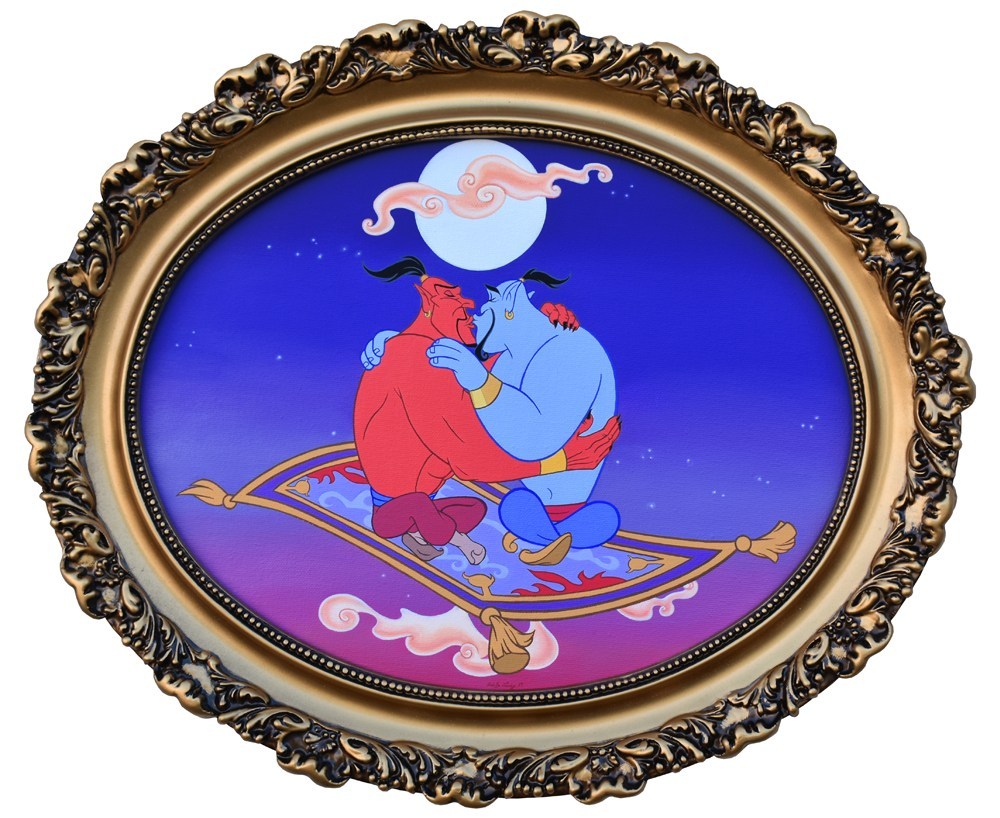 “Though the subjects of his paintings are familiar cartoon faces, José Rodolfo’s compositions are far from familiar,” the gallery says. “Through the darkly humorous appropriation and manipulation of classic cartoons and pop-cultural icons, the artist is able to subvert the clean-cut hetero- normative fairytale structures from which his characters are plucked. Whether it be two princesses kissing, or a beloved fairytale prince participating in illicit drug activity, Rodolfo’s compositions are meant to shock, discomfort, and highlight the unrealistically sanitized perfection that these characters stand for.”