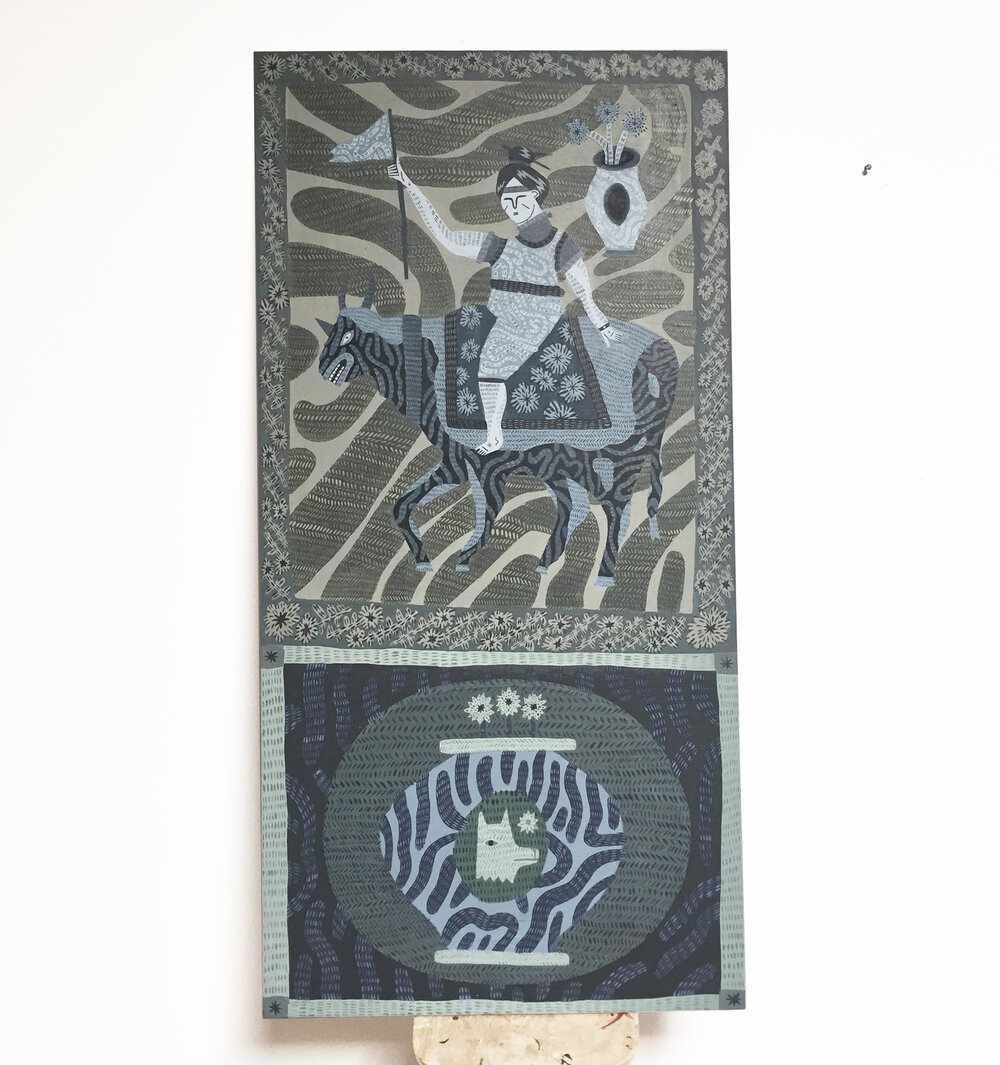 The mixed-media paintings of Betsy Walton carry surreal, vibrant scenes, with characters that meld into each other and their natural backdrops. A current body of work, titled “Psychic Landscapes,” gathers new views into her dreamlike worlds.