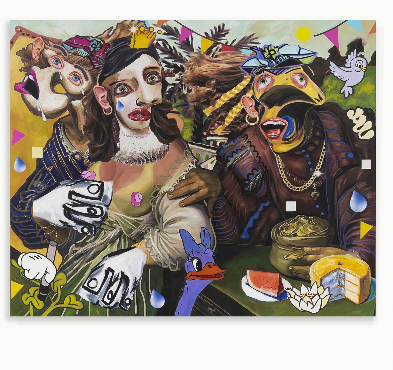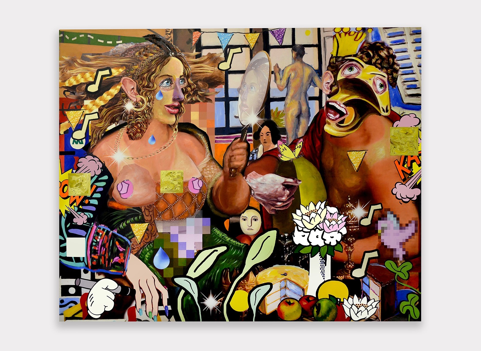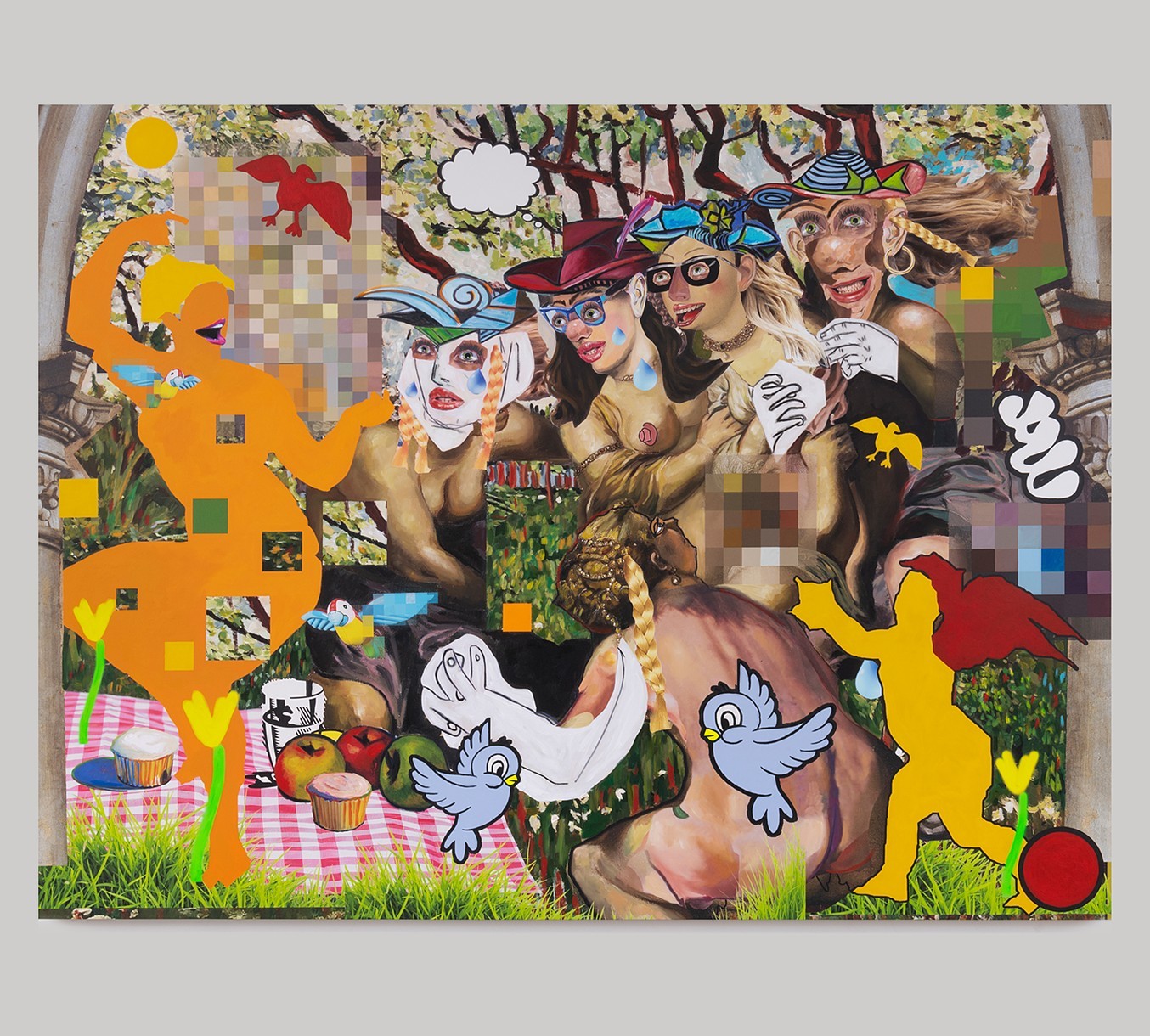 “A Picasso head, Lucas Cranach torso, Richard Prince foot, Cezanne fruit, Lichtenstein paint brushes and Disney bluebirds comingle to create a grotesque, unapologetic encapsulation of the absurdity with which female figures have been depicted throughout art history.” Akron Art Museum says. “But Zuckerman is not just looking backward. She is proposing a way forward that is more honest, more embracing of the plurality of women’s identities. She states that her work represents a “marginalized perspective that’s been cast aside—one that’s emotional, unsure and vulnerable yet powerful in the conviction that [they] belong in the world.”