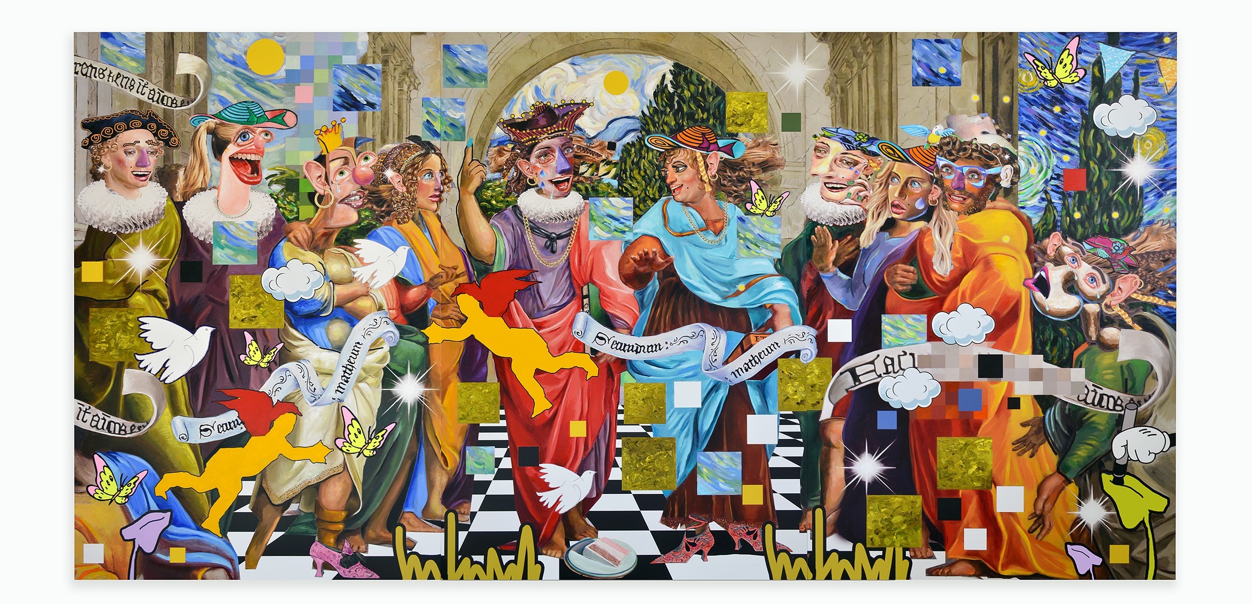 Painter Allison Zuckerman’s work pulls from the past and digital present of art history to craft amalgamated depictions of women. She first designs her works digitally, then prints them on the canvas before applying paint to the creation. This year has brought multiple museum exhibitions for the artist, including stints at Akron Art Museum and Herziliya Museum and the University of Florida.
