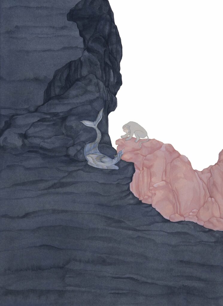 Painter Maha Ahmed’s creature-filled paintings are inspired by traditional Persian and Japanese techniques and sensibilities. Rendered in gouache on paper, the works often feature the beasts fully enveloped by their natural backdrops.