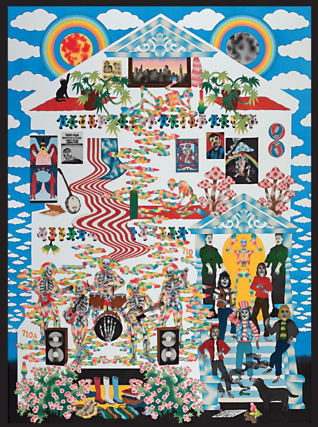 From early on, the energetic works of Stanley Mouse and Robert Crumb had wiggled their way into his periphery, followed by the likes of Margaret Kilgallen and Barry McGee, who were married until her untimely death, as well as fellow Mission School artist Chris Johanson. Thereafter, something had begun to crystalize. Yet once he discovered local artists of his age group doing exciting work—like Keegan McHargue and Tauba Aurbach—his own prospect as an artist came ringing into clear view.