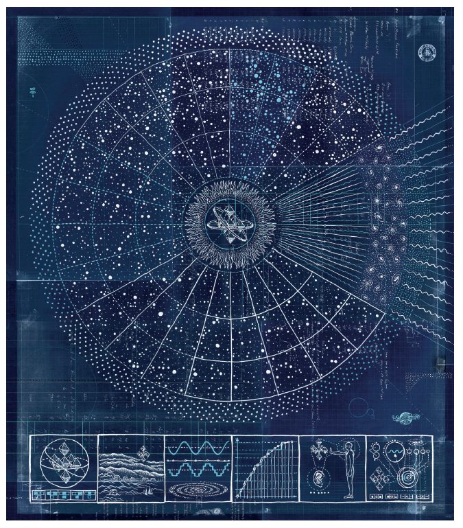 His art wrestles with the dichotomies present in humanity’s constant quest for understanding the reasons for our existence. He taps into reason and emotion, knowledge and belief. As Diaz explains, “There’s a part of me that is very logical. I like hard science and hard facts. But then there’s also this side of me that’s very esoteric and into magic and mysticism. I think that stems from growing up in a very Catholic upbringing.”