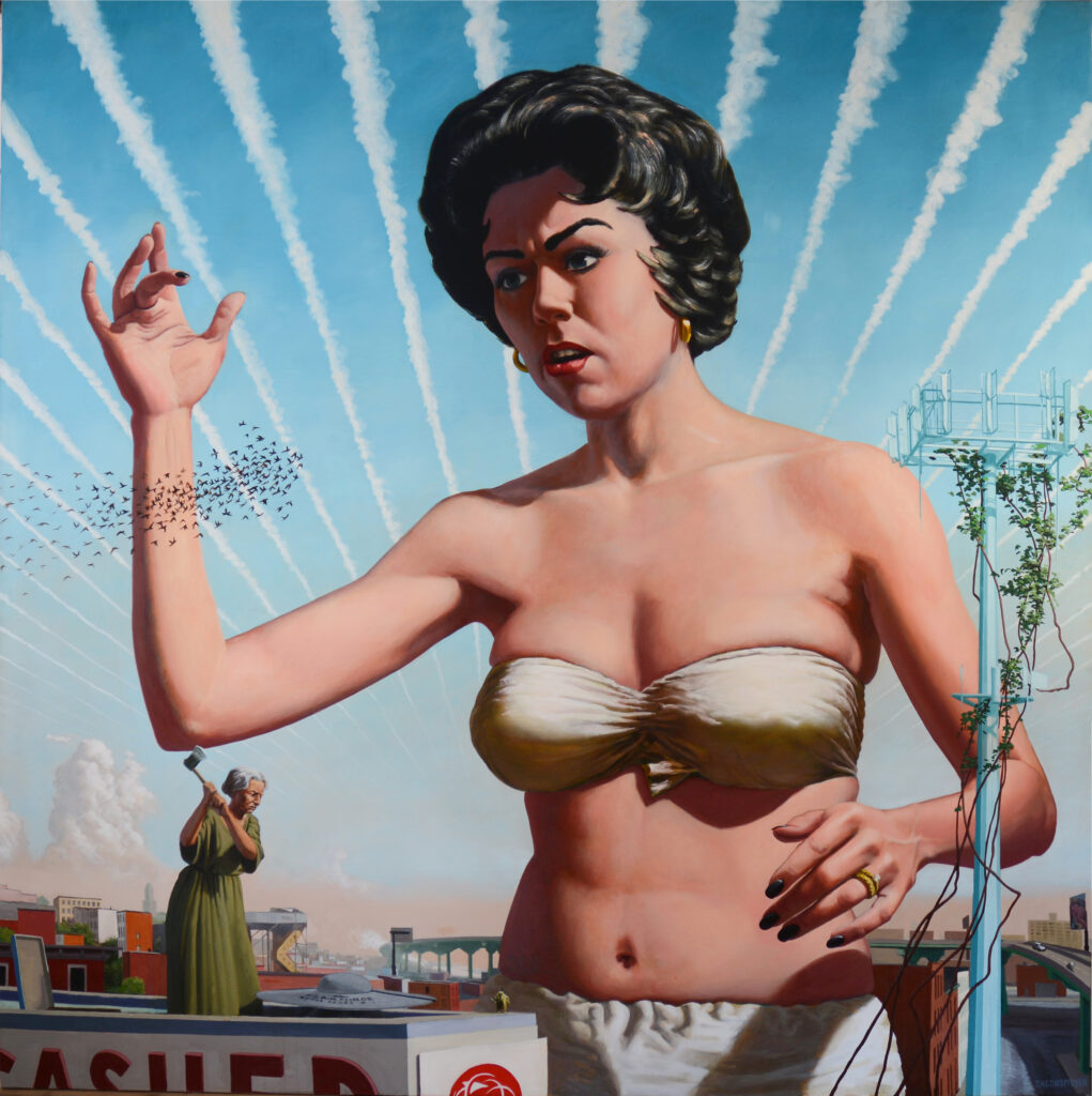 The middle-aged figures inhabiting Madeleine Pfull's paintings are extracted from 1980s suburbia. The Australian artist has said that "beautifully painting mundane heroism is a large aspect of my work.” Pfull has said that she has modeled for herself to craft the paintings, donning wigs and accessories to embody the energy of her subjects.